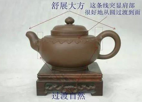 一个人,不仅讲究外形美,在形态上还附带着精、气、神,所以一个壶不是简单地仿制一个形,在形之外,还要具有神韵气质。一个人讲究的是站如松、坐如钟。如果是直挺挺地躺着,就有点吓人呢。一把壶同样要有神韵气质,虽然不一定要求同时具备,但要看侧重点。对于紫砂壶形来说,千变千样,各人各样,如何找入眼点呢?各种紫砂壶在仿制各类原形时,首先要明确的是“仿”,仿的是形似,而不是绝对的与原形一致,这就与具象雕塑艺术区分开来。比如,西施壶:不一定要做到和美女的脸蛋一样,能把美的内涵表现出来就行。汉铎:能把铎之特征表现出来就行。仿古:能把气势表现出来就行。紫砂壶首先是个实用器,在这个器物的形态上,还载有两大方面的含义:一方面具有拟人的一面,看壶就好比看人,不管怎么变,形要正,坐要稳,过渡自然顺畅,收要收的得体,放要放的大方。