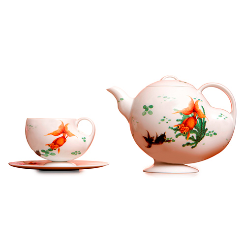 《八方新气》以“釉中彩”工艺,经过1300度高温烧製,壶杯表面光滑,色泽花纹细腻写实,有实用及典藏的价值。