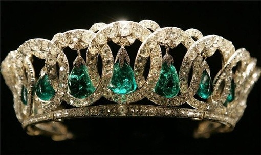 俄罗斯公爵夫人王冠上的珍珠可以拆卸下来,这是伊丽莎白二世女王将珍珠换成绿宝石。