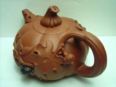 二、自然形紫砂壶造型,是以造化为师,取材于动植物的自然形态。因这类紫砂壶的造型带有一些浮雕、半浮雕、浅雕的装饰,俗称“花货”或“塑器”。紫砂壶花货主要是运用提炼取舍的艺术手法,利用自然形态的变化来造型。另外则是在几何形体上运用雕镂捏塑的手法,将自然形态变化为造型的部件,如壶的嘴、鋬和的子等。花货紫砂壶其造型规则是“源出自然而高于自然”,一件成功的花货,是将自然物体形态的主要特征和最本质之处,用艺术的语言表现出物体形态的最美部分。并要符合功能合理、视觉美观和使用舒适的原则。紫砂传统造型鱼化龙、岁寒三友、南瓜、荷花壶等均是花货造型的代表作品。