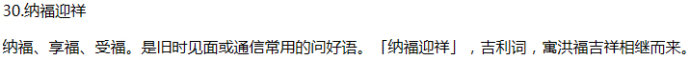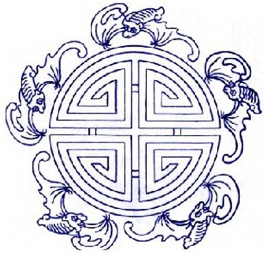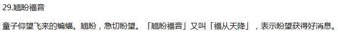 解题:福,指洪福、福气、福运。《韩非子》载:「全寿富贵之谓福。」《千字文》中有「福缘善庆」一语,表示善良与吉利能引来福。用蝙蝠组的成图案,寓意有福、福运和幸福。