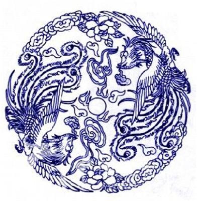 解题:凤凰,亦作「凤皇」传说中的神鸟。雄的叫「凤」,雌的叫「凰」其形据《尔雅·释鸟》郭璞注:「鸡头、蛇颈、燕颔、龟背、鱼尾、五彩色,高六尺许。」「出于东方君子之国,翱翔四海之外,过昆伦,饮砥柱,濯羽弱水,莫宿风穴,见则天下安宁。」古来有关凤凰的传说故事很多,传统年画,以凤凰为题材的图案运用也较普遍。