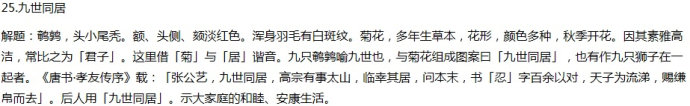 解题:室,房屋、房间、内室。《诗·小雅·斯乾》:「筑室百堵,西南其户。」亦指家资。《国语·楚语上》:「施二师而分其室。」又指妻室。《礼记·曲礼上》:「三十曰壮,有室。」「石」,谐音「室」也。「鸡」,「吉」谐音。「室上大吉」,寓意合府安康,生活富裕,大吉大利。