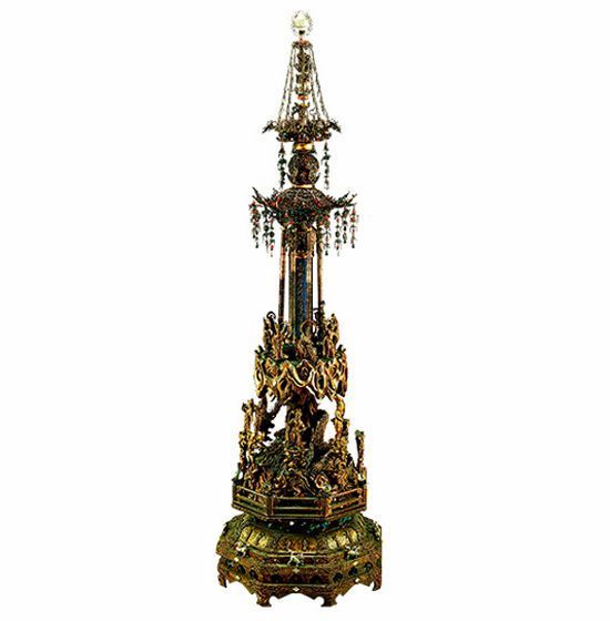 镇国之工艺品:真珠舍利宝幢,北宋苏州工艺集锦。专家李久芳点评:这件北宋真珠舍利宝幢,一是因为它有具体的出土时间。这件宝幢制造于北宋年间,时代很早,在同类木刻作品中是少数保存这么完好的。二是工艺极为精湛,使用了镂雕的技术,分作三层,刻画了各种飘逸生动的仙人形象。塔顶嵌了一颗水晶珠,作为顶部的装饰,全身上下用了大小相等的四万颗色彩斑斓的珍珠,玲珑剔透,装饰极为珍贵。运用了玉石雕刻、金银丝编制、金银皮雕刻、檀香木雕等十多种特种工艺。 整座宝幢造型优美、工艺之精巧举世罕见,代表了整个北宋时期苏州工艺的集锦。