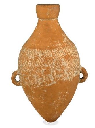 公元前4500年左右的陶罐-双耳细颈椭圆土罐 简介:来自中国陕西半坡村,新石器时代,阳韶文化发源地 尺寸:高31.7厘米