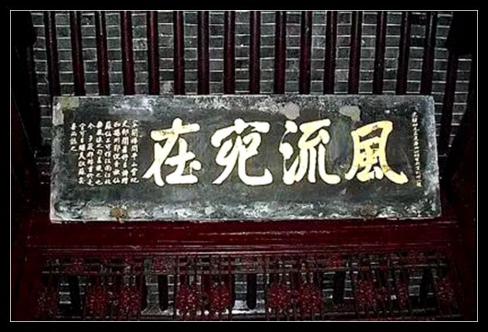 在江苏扬州大明寺的平山堂,正堂左边的有一“风流宛在”匾额,出自清光绪初年两江总督刘坤一之手,据说刘坤一是为追念曾在扬州主政的欧阳修所作。原来,历史名人欧阳修在扬州时是个“风流太守”,在风情万种、色艺双绝的扬州美女石榴裙下曾弄出了不少韵事。