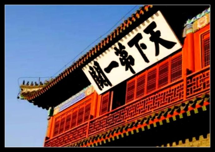 “天下第一关”坐落在秦皇岛市山海关区。其城楼上的牌匾所提“天下第一关”“第”字竹字头变草字头。此匾乃明代著名书法家萧显所书,其匾长5米多、高1.5米,每个字都是1米有余,其大自不待言;它从东向西逐渐增大,在笔划的处理上,把第一的“第”字改写成草字头的“苐”,使笔划减少,视觉上的分量减轻,让繁体的“关”字笔划凝重、粗壮有力,牢牢地压住似乎将要翘起的城楼西端。字为楷体,笔力遒劲雄厚,与城楼规格浑然一体,给人以大关雄壮平稳感,堪称古今巨作。