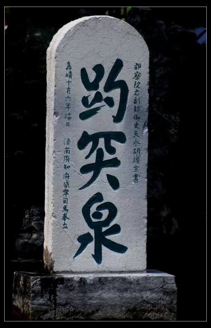 在济南府的趵突泉,其泉池中有块半浸水中的石碑,上镌三个雄健大字:趵突泉,是明代山东巡抚胡缵宗所写,但是“突”字少了一点。传说劲挺柱涌的三股水把“盖子”顶掉了,才使“突”字变成了现在这个样子,当然这只是形容泉水势强,人们的一种遐想。故济南趵突泉“突”字穴宝盖上面少一点,是最神话的错字。