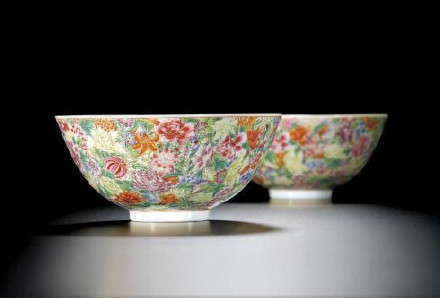雍正粉彩过枝“群芳祝寿”纹大盘