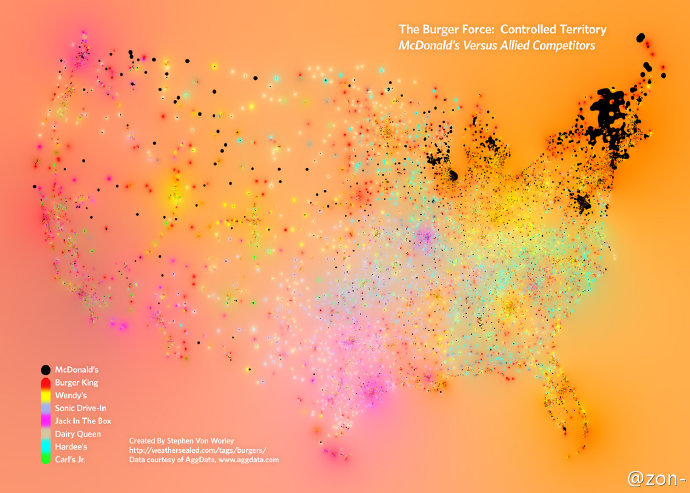 ↓The burger force controlled territory McDonald's versus allied competitors(汉堡战争)