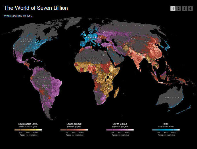 ↓The World of Seven Billion,Where & How we live(世界人口70亿)