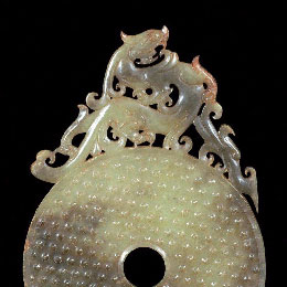 汉代 青黄玉龙纹出廓璧