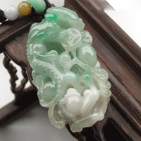 苍龙教子玉雕一般为,苍龙在前(上),小龙在后(下),穿梭于云间;苍龙回首与小龙相望,神情和蔼。苍龙教子意为望子成龙。