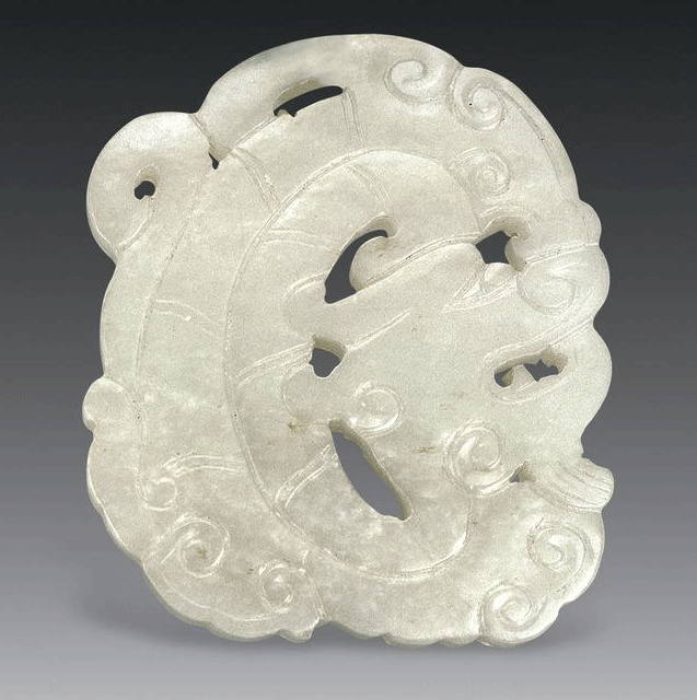 清代 白玉镂空雕龙形玉璧