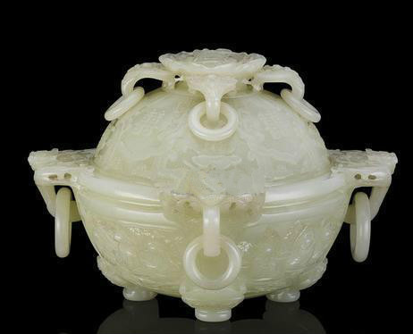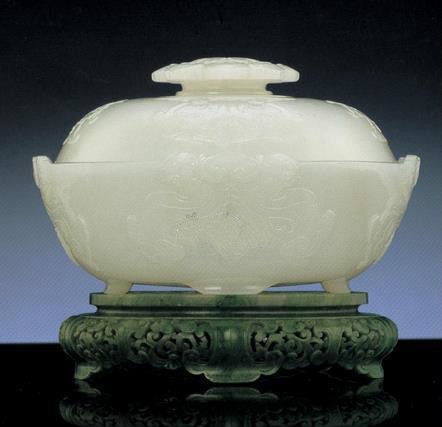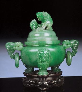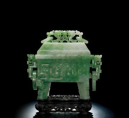 此炉以上乘而硕大的翠玉料雕琢而成,掏膛规整,精雕细琢,莹润通透,为翠玉器中之极品。