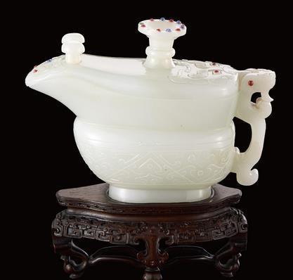 清乾隆丙申年 (1776) 白玉仿古嵌宝「御制诗」匜