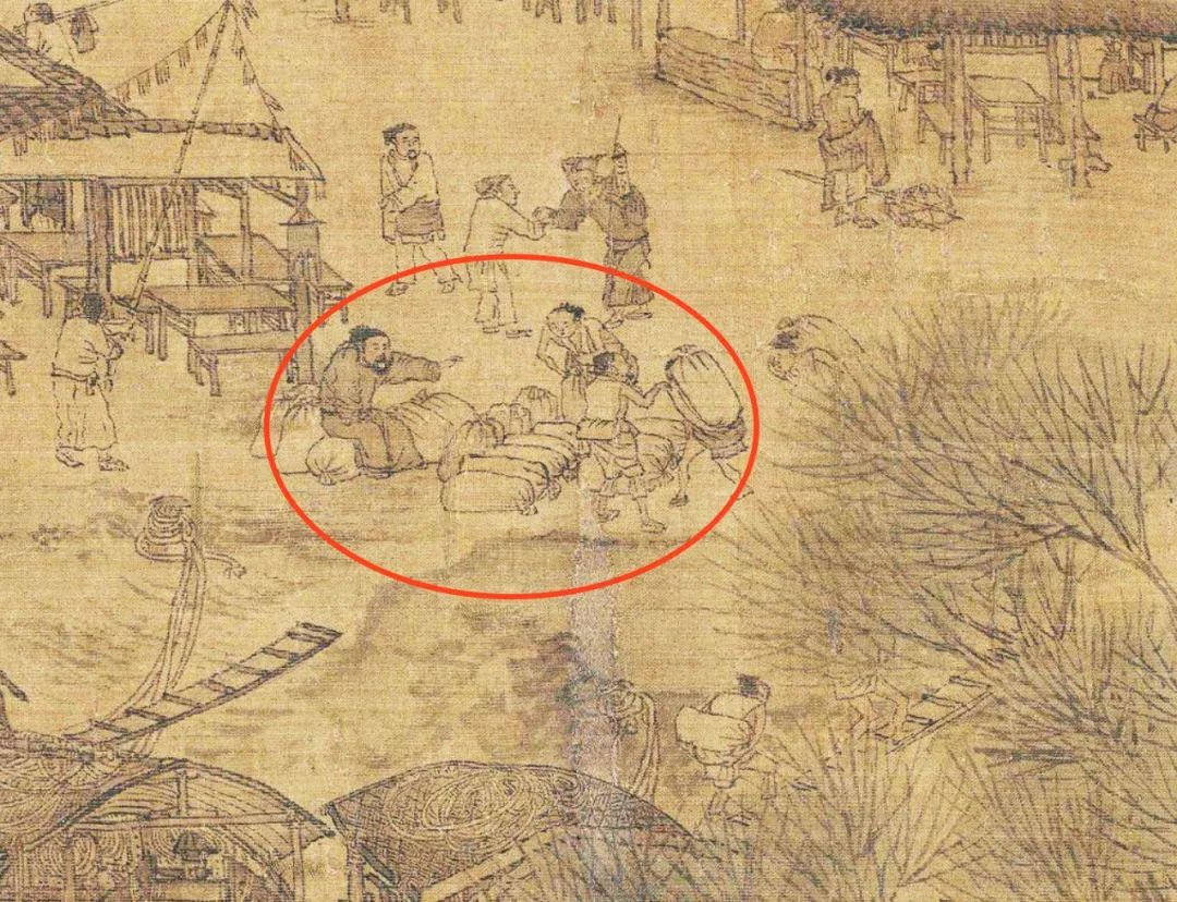 六 进城一路,顺着汴河沿岸,餐馆的老板装饰店面,算命先生与过路的行人攀谈,装卸工正在卸船,码头来了即将运往官仓的官粮,但却没有一个官员到场监管,船主们指挥着码头工人,光明正大地把国家的粮食运往私仓。