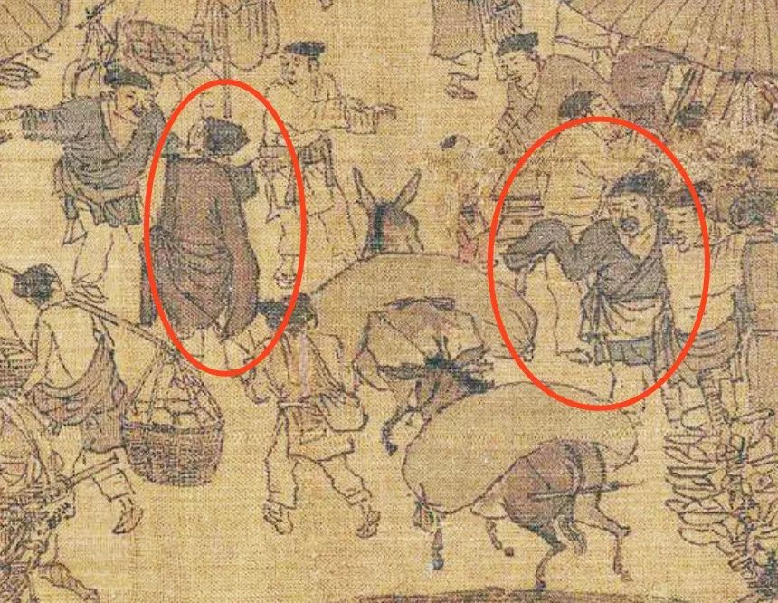 有两个袖子长得分外妖娆的人,他们在古代被叫做“牙行”,也就是现在的中介。穿长袖的衣服,是为了在袖筒里摸彼此手指头,讨价还价,完成交易。