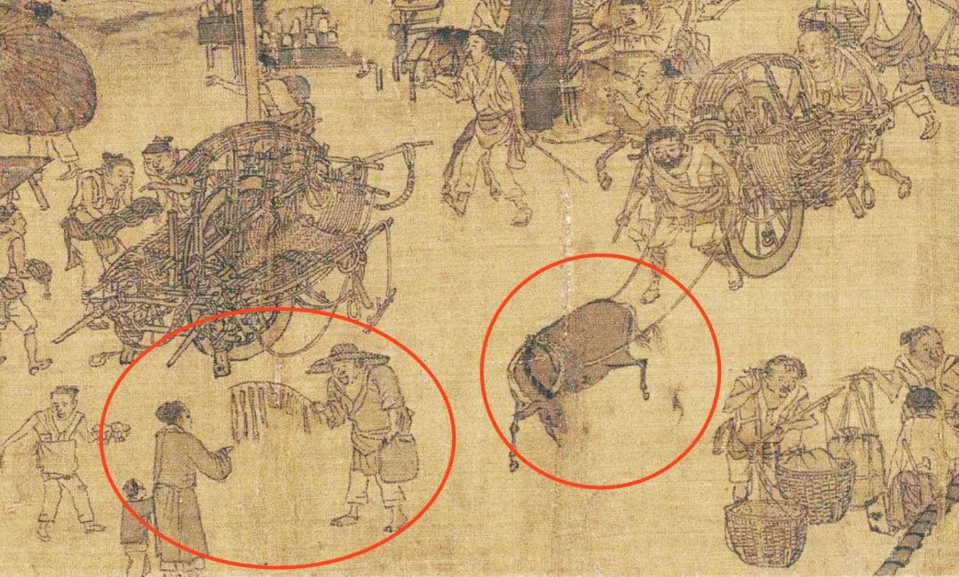 桥面上,卖绳索的、卖鞋的(款式挺多)、卖铁器五金的……把小摊直接摆在交通要道上,明显是占道经营。虹桥本来就窄,路人、挑担工和驮货物的牲口不得不拥挤地穿行,小贩们却安然地在旁边招揽生意,北宋的城市管理约等于无。