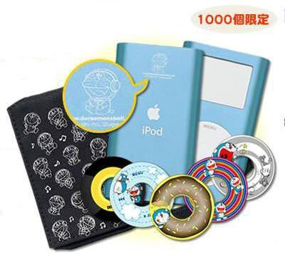 这套特别版iPod mini中包括有背面用激光刻印了机器猫图案的蓝色iPod mini一部、Doraemon''s Bell商店专属布制保护套,以及五枚可以贴在iPod mini转盘上的机器猫造型贴纸。这次的特卖只有1000套,每套的含税售价为37800日元,每人只限订购三套。