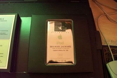 在eBay销售网上我们看到一款别具特色的iPod播放器,根据描述,这是一款迈克尔·杰克逊特别版的iPod播放器,这款名为“Visionary”的特别版iPod原型为30GB的iPod video播放器,原价只要250美元左右,而迈克尔·杰克逊特别版的iPod却要800美元。