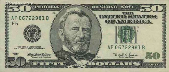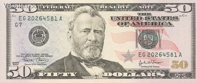 50美元上是第18届总统尤里西斯·格兰特·葛仑。