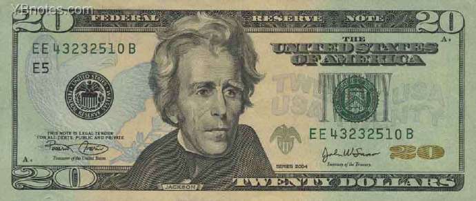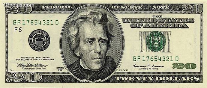 20美元上是第7届美国总统安德鲁·杰克逊