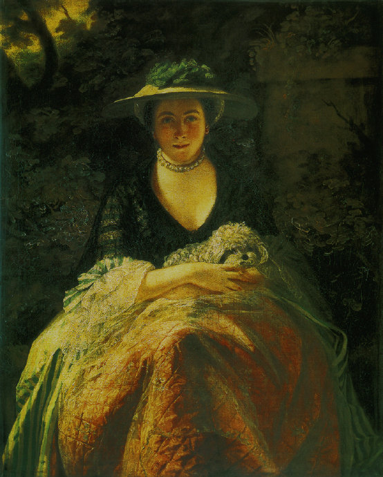 例如这件优雅精练之英国贵妇伊莉萨白‧德尔美夫人﹝Lady Elizabeth Delme﹞的肖像画,人物彷佛科雷吉欧﹝Antonio Correggio﹞的作品,风景类似范戴克﹝Sir Anthony Van Dyck﹞的画面。照在叶丛上的光线不但在树干上留下光辉,又能优雅稳重地映照在人物上面,反映出十八世纪英国人对自然的观点,因此这种风格在英国的肖像画中极受欢迎。