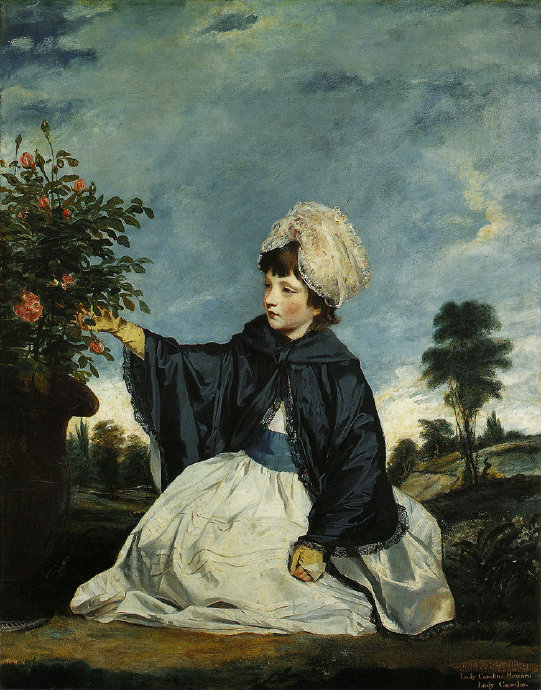 雷诺兹在表现贵族的肖像画中很能表现人物的威严气度,但是在处理有关童年主题时有时太多愁善感;不过一但捕捉到童稚的清新气息时,画面又极其动人。以这幅《卡罗琳‧霍华德小姐》肖像画为例,少女的纯真气息在玫瑰花丛的对照之下虽略带凄凉,但其含蓄的表现却深扣人心。