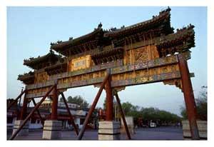 东宫门牌楼东宫门牌楼立于颐和园的正门东宫门之外,可以说“未进其园,先见其辉”。清朝时期老百姓最多也就只能走到这里了,牌楼以里是皇家禁地,当时牌楼的两侧还树立着木栅栏。牌楼的正面写着“涵虚”,背面写着“罨秀”。“涵虚”的意思是山高水阔,“罨秀”的意思是可以捕捉欣赏到美丽的景色。