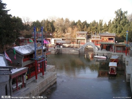 在颐和园的最北端就是苏州街了,这里是仿苏州的山塘街建造的买卖街,这里一派江南的韵味,在这里购物别有一番情趣。1860年苏州街被英法联军烧毁了,光绪时期没有财力在把它恢复起来,所以一直荒芜着,我们现在看到的苏州街是上个世纪80年代重建的,于1991年9月15日,正式对外开放。乾隆时期这里是非常热闹的买卖街,河的两岸有许多店铺,这些店铺由宫中的太监扮作商人及顾客,由宫女扮成民妇,假装营业,以假乱真。