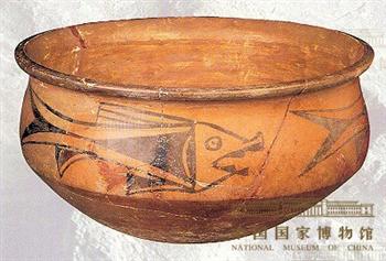 仰韶文化的鱼纹图案非常的著名,这件仰韶文化时期的陶盆上就有鱼的图案。仰韶文化的鱼纹经历了一个由具像到抽像的变化过程,鱼纹逐渐的演变成几何纹样,下面的图就是它的演化过程。