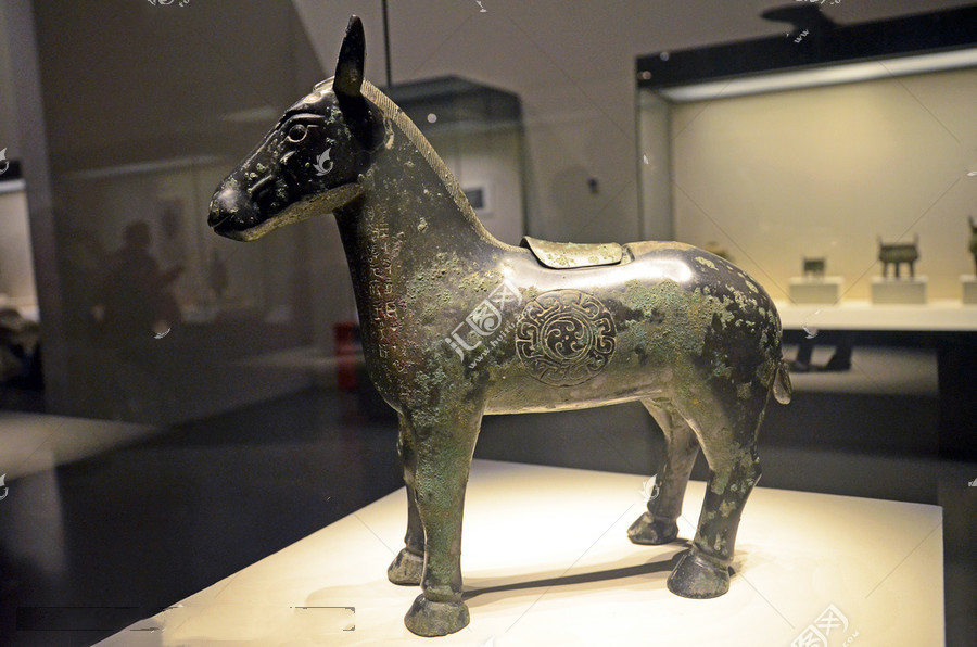 这件西周时期的青铜驹尊于1995年在陕西郿县李村出土,这是一件盛酒器,小马驹的背上有注酒的入口。在马驹的胸前有铭文,记述了周王“执驹”的事情,“执驹”是周天子考牧简畜的一种制度,即为幼马断奶,离其母,正式编入马厩。“执驹”一事又见于《夏小正》文中,如果这条记载非后世所撰,那么“执驹”这一制度在夏代已经存在。
