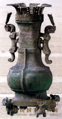 这件蔡侯申青铜方壶于1955年出土于安徽寿县蔡侯墓。方壶上有铭文“蔡侯申之用壶”,这里的“蔡侯申”指的是蔡国的国君蔡昭侯。