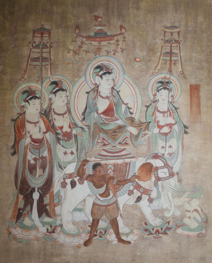 1988年-1992年参加莫高窟《佛说法》,西壁北侧《文殊变》的整窟模型复制。该窟于2008年2月至3月