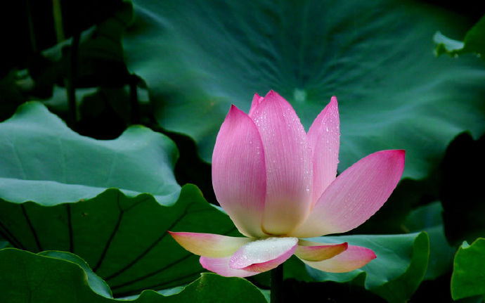 水陆草木之花,可爱者甚蕃。晋陶渊明独爱菊。自李唐来,世人甚爱牡丹。予独爱莲之出淤泥而不染,濯清涟而不妖,中通外直,不蔓不枝,香远益清,亭亭净植,可远观而不可亵玩焉。