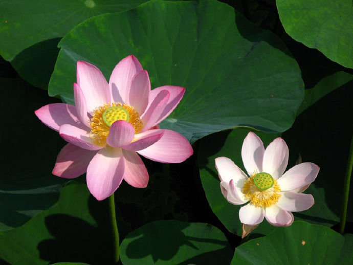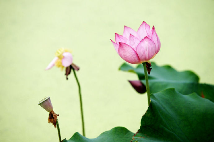 荷叶罗裙一色裁,芙蓉向脸两边开。
