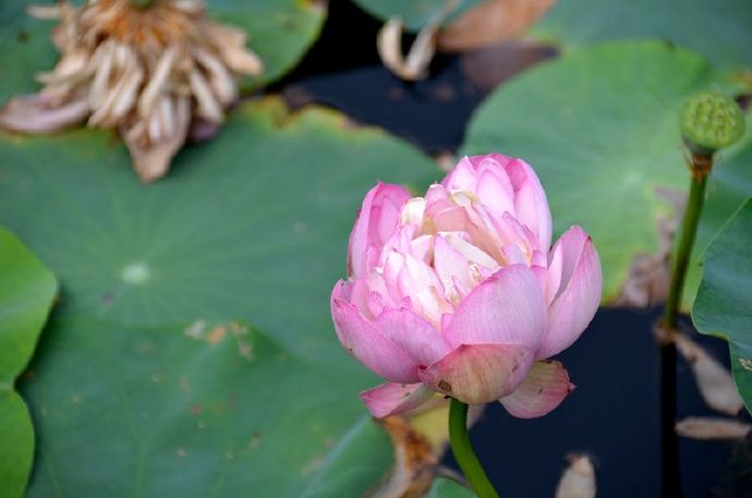 半在春波底,芳心卷未舒。