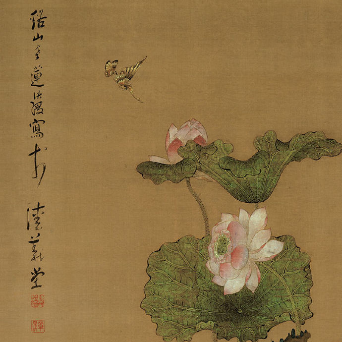 明 。陈洪绶 【荷花鸳鸯图】局部