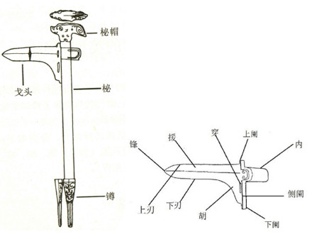图1、戈与戈头各部位示意图