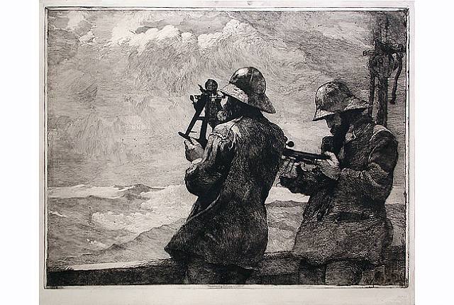另一方面,霍默有不少亲密的男友,其中一位是艾伯特.凯尔西(Albert Kelsey),二人曾作伴在巴黎住了两年。在那里,两人有一张类似结婚照的合影,凯尔西在背面写着“达蒙与皮西厄斯”(Damon and Pythias)——希腊神话里著名同性爱侣的名字。为了纪念这段感情,霍默还画过一张带有性意味的幽默的素描,题为“艾伯特在巴哈马群岛骑着大海龟”。 在19世纪的文学与艺术中,男子之交(male bonding)是突出的主题,也在霍默的画作中得到充分展现,比如描绘战士们同心思念家乡平静生活的《家,甜美的家》;守卫们在野外享受大自然之美的《两个守卫》;渔夫一起劳作的《捕鲱之网》,一起抵御风暴的《困厄的信号》等等。