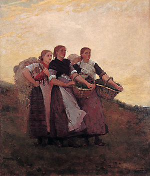 温斯洛·霍默,1836年2月24日出生于波士顿一个中产阶级的家庭。父亲查理·霍默是位商人,母亲赫里埃塔·本森是个业余美术爱好者,曾在私立美术学校学过水彩画技法,霍默从小也就有了良好的艺术熏陶。19岁时,霍默在波士顿一个版画印刷店做学徒,两年后,他结束了学徒的生活,走上了职业绘画的道路,为刚创办的《哈泼周刊》供稿和为该刊的文字稿插图,并因这些刊登在《哈泼周刊》的画而小有名气。但他并不满足于此,1859年秋天,霍默由波士顿迁往纽约,进入纽约的国立美术学院学习,同时向油画家弗雷德里克·龙德学习油画,并开始懂得艺术要给人带来快乐、愉悦和美的享受,更重要是传达思想,告诉人们人生的道理,让人们获得生活的勇气和力量。就像有一位艺评家对其作品的评说:“在美国,从无一幅画能引起人们的如许感触。”