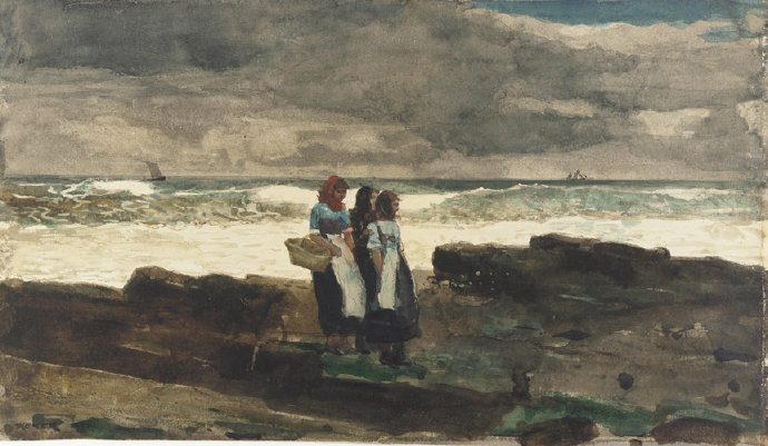 温斯洛·霍默(Winslow Homer,1836-1910)是19世纪下半叶最重要的美国画家,他开创一种美国特色鲜明、既现代又古朴的画风,因此,人们常把他和梭罗、麦尔维尔、惠特曼等文学大师相提并论。 霍默并非科班出生,他的艺术教育生涯起源于早期为波士顿的平版画家当学徒,之后,他作为自由职业者为《哈泼周刊》(Haper's Weekly)画插图。1859年他开始了自己的画家生涯,最早的一组画作以国内战争为题材。1873年他开始画水彩画,后来水彩画便成为他晚期艺术生涯的主打作品,其中最著名的画作是1890年开始创作的海景系列。
