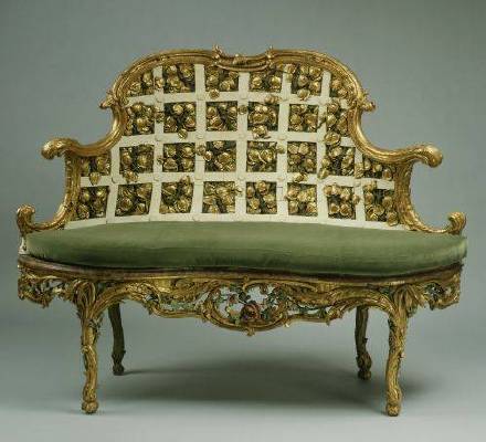 椴木雕刻镀金靠背长椅 -德国 18世纪