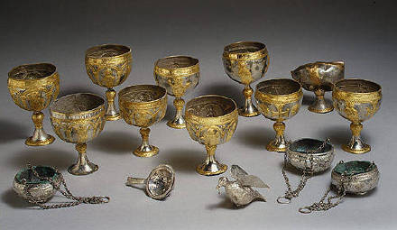 一套十五个银镶金餐杯-意大利公元6世纪