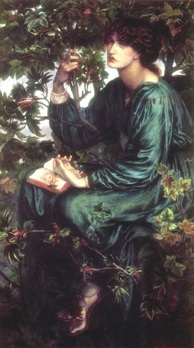 作为19世纪英国拉斐尔前派重要代表画家的但丁"迦百利"罗塞蒂(Dant Gabriel Rossetti,1828-1882)显然与同时代的其他几位画家不同。他是拉斐尔前派艺术向后来唯美倾向转变的领导人物,同时也是绘画史上少有的取得独特成就的画家兼诗人。罗塞蒂远离社会问题,不趋向写实画风,执着于象征诗意的表现手法;其深厚的文学修养、高度的诗的热情以及近乎悲剧性的一生,赋予了作品盎然的诗情、朦胧的画意与浓浓的悲剧情绪。