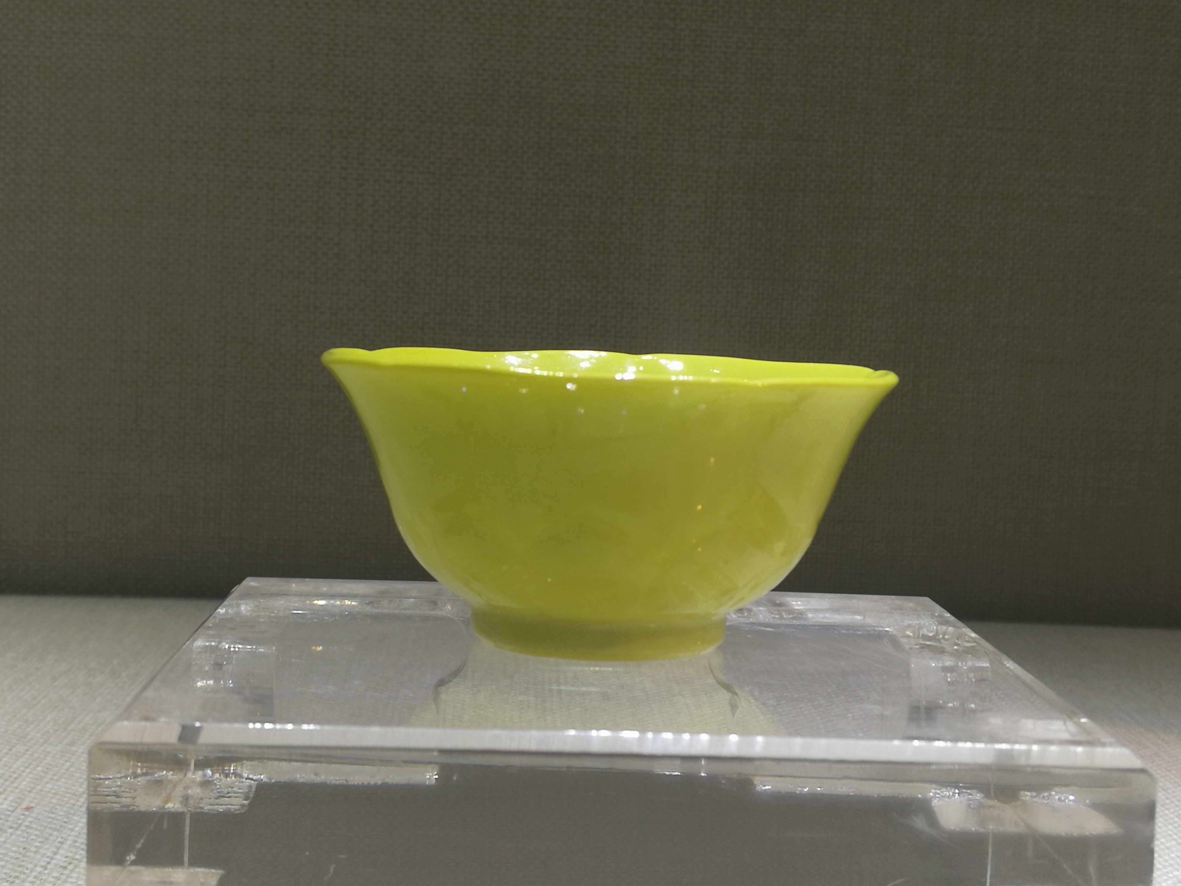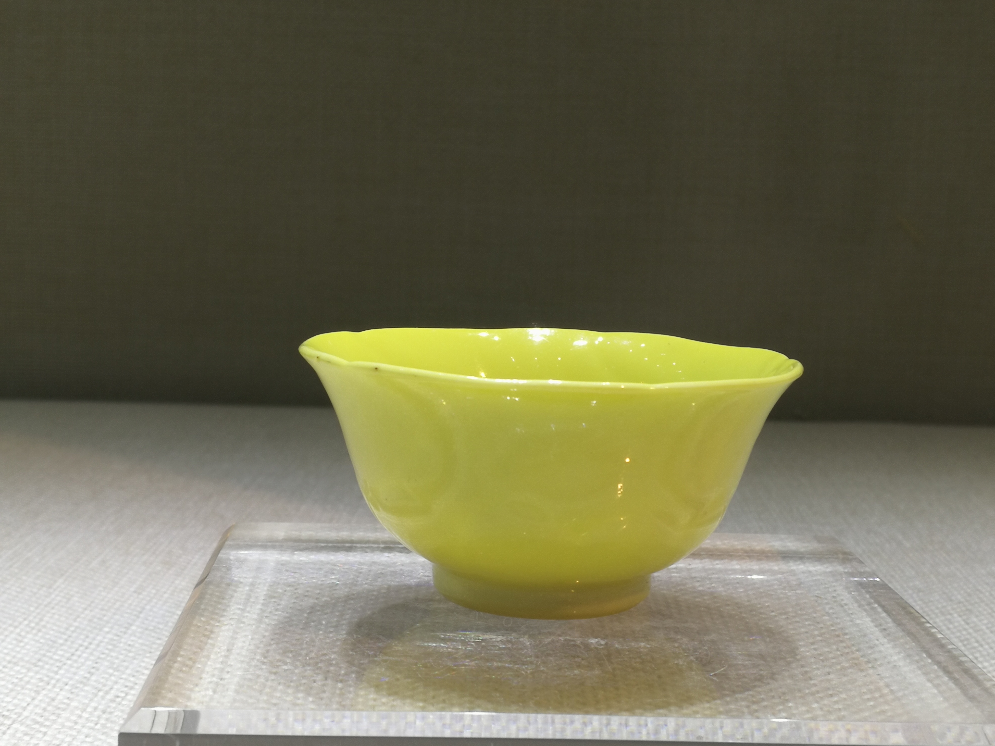 黄釉器历来是封建时期皇家尊享之色,除宫廷用器皆不可使用全黄之色。有清一代,则以柠檬黄釉最为名贵。早在康熙时期,内务府珐琅作就已使用从西洋引进的锑黄作为珐琅彩瓷器的彩料和色地,由于这种黄釉的颜色比传统浇黄釉更为浅淡幽雅,故又称为“淡黄釉”,清代文献称之为“西洋黄”、“洋黄”,是以氧化锑为主要呈色剂的低温色釉。雍正十三年唐英撰《陶成纪事》记载了“岁例贡御”的五十七种彩、釉,其中的“西洋黄色器皿”所指便是本品之柠檬黄釉。