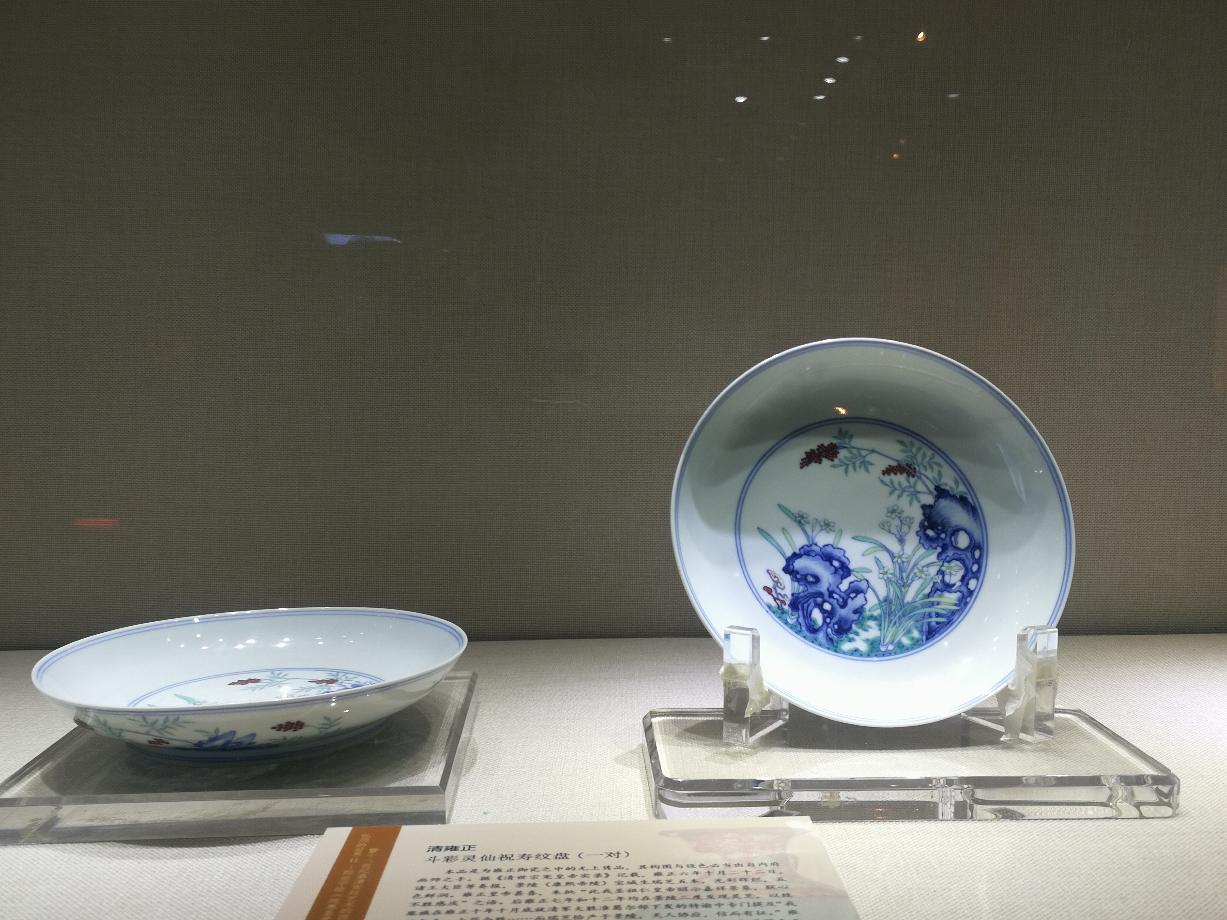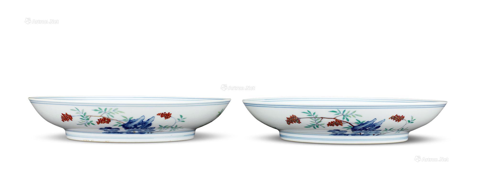 清雍正斗彩灵仙祝寿盘一对