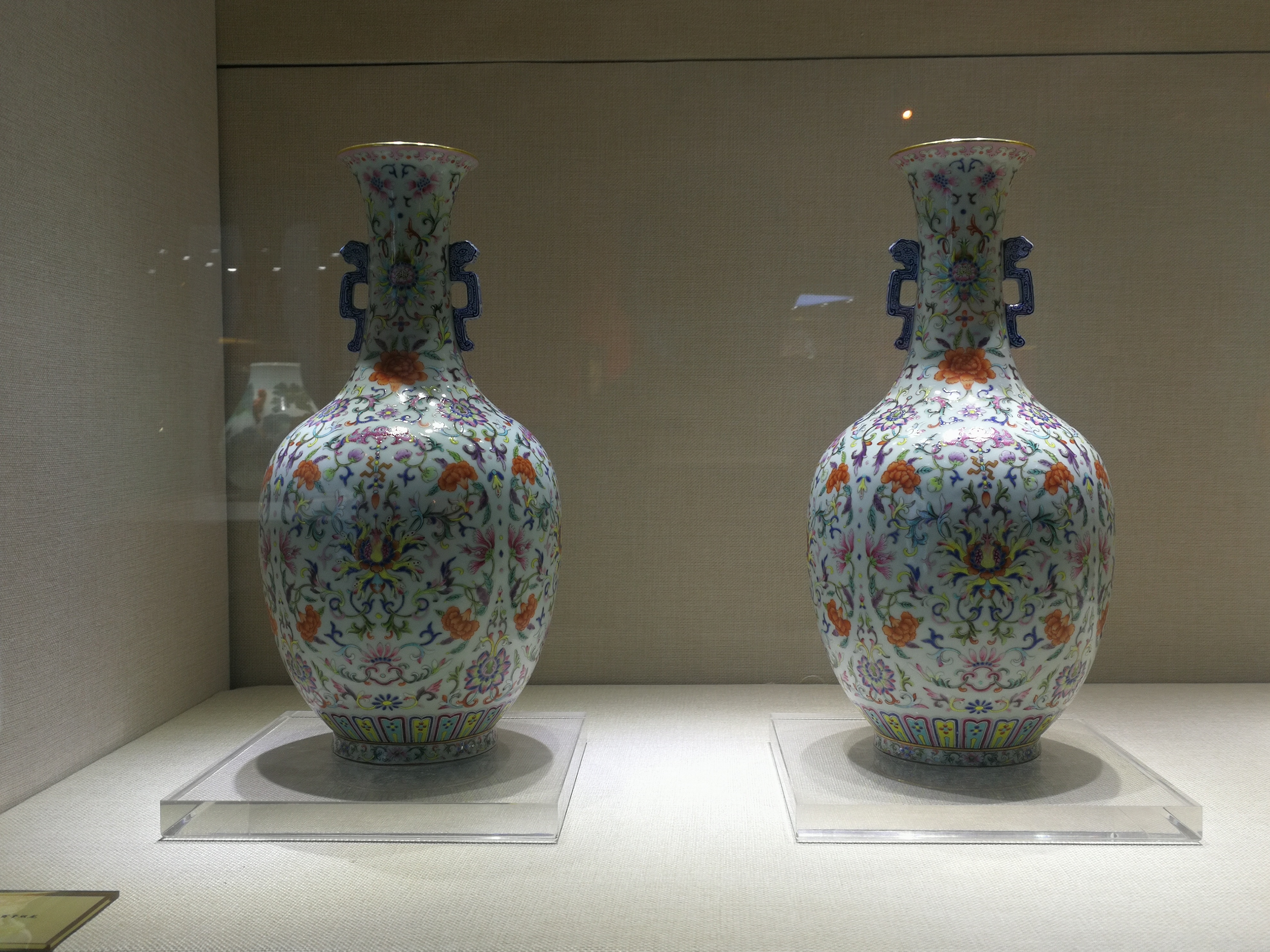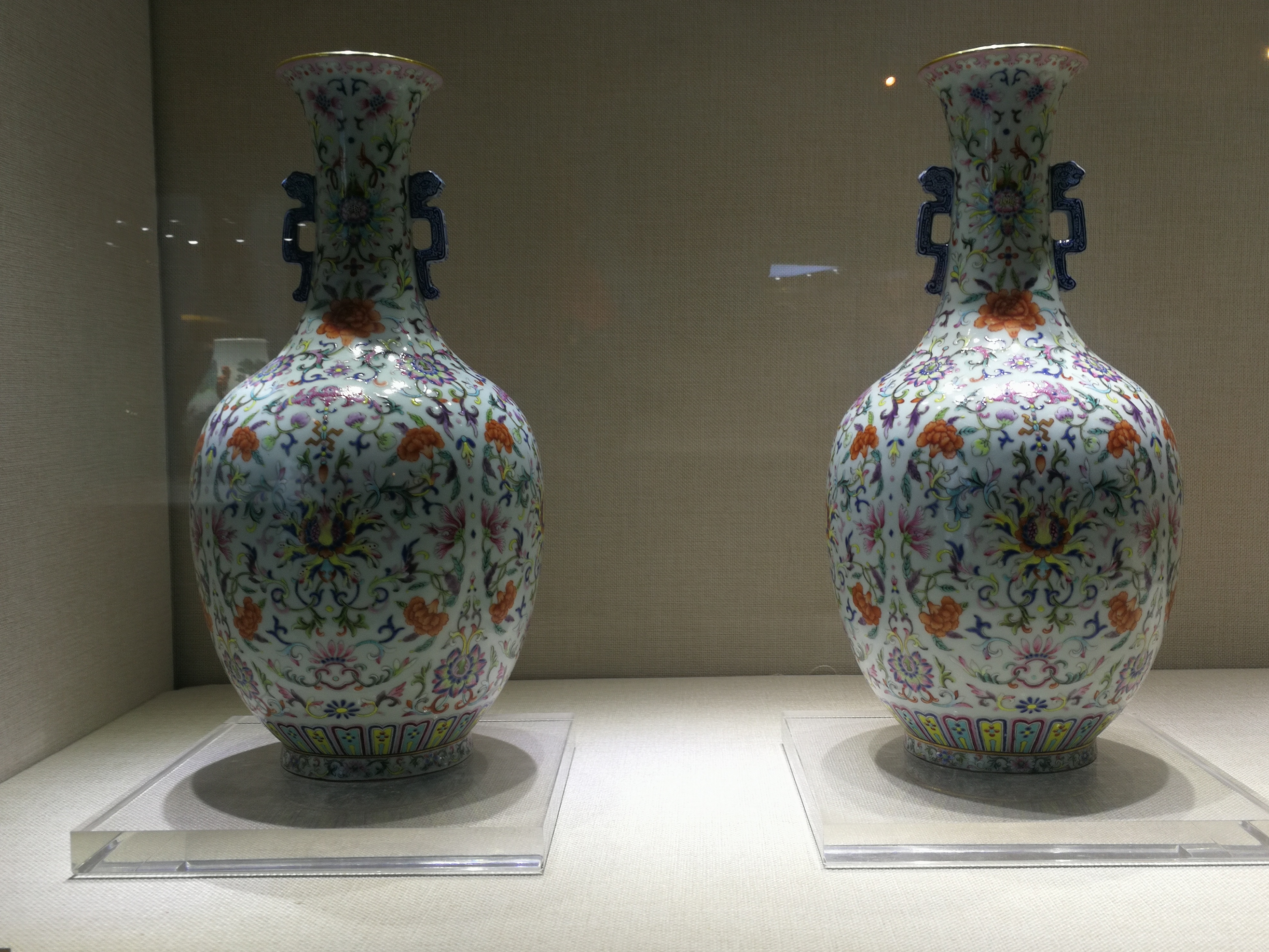 洋彩宝相花榴开百子双龙耳瓶(一对)