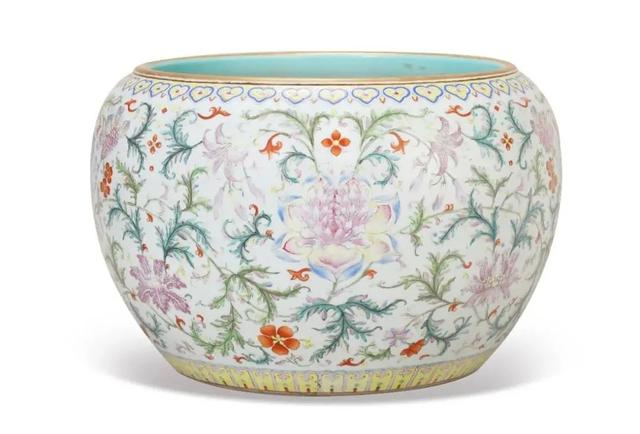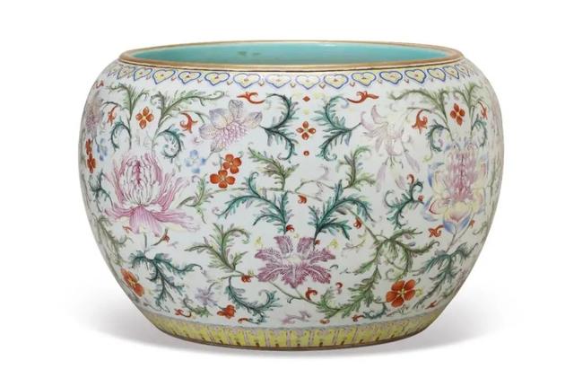 清乾隆洋彩缠枝花卉卷缸